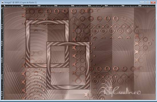 Couleurs avant plan : #72584f Couleurs arrière plan : #d3c0ba ************** Préparée un dégradé Linéaire /angle 45/répétition 3 Inverser non cocher **************** Ouvrir un nouveau calque transparent de 900/550 Remplir de votre dégradé/effet/modules externes/dsb flux/mosaic Ripple