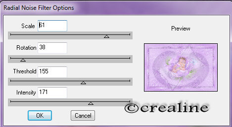 Réglage/netteté/netteté Sélection/inverser/effet ombre portée 7/ 7/ 30/ 5/ noir refaire en négatif -7/ -7 / 30 / 5 noir Désélectionner tout ****************** Image /ajouter une bordure de 2 couleur avant plan Ajouter une bordure de 2 couleur arrière plan Ajouter une bordure de 2 couleur avant plan Ajouter une bordure de 25 couleur arrière plan Sélectionner la bordure avec votre baguette magique Remplir de votre dégradé du départ/effet/modules externes/Radial Noise