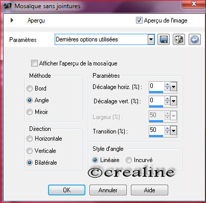 Calque dupliquer/image /miroir/fusionner calque du dessous Calque/agencer/déplacer vers le bas Image /ajouter une bordure de 2 couleur arrière plan Ajouter une bordure de 25 de couleur avant plan/sélectionner la bordure Remplir avec votre dégradé/sélection/transformer la sélection en calque Désélectionner tout/effet modules externes/medhy/ Kaléidoscope
