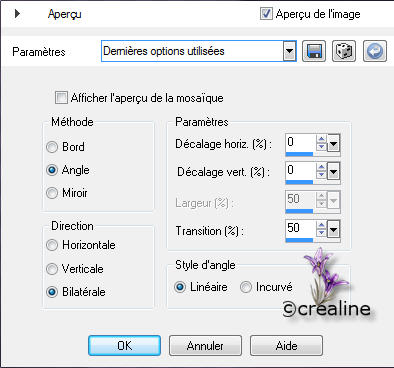 14. Effet/effet 3D/ombre portée/ 1/1/40/1 noir 15. Désélectionner tout 16. Calque/dupliquer/image/miroir 17. Fusionner avec le calque du dessous/calque/dupliquer 18. Effet/géométrique/cercle