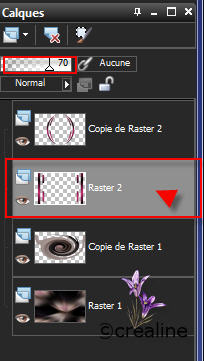 26. Baisser l’opacité du calque à 70 27. Calque /dupliquer/image /miroir 28. Fusionner avec le calque du dessous 29. Calque /dupliquer 30. Image /rotation