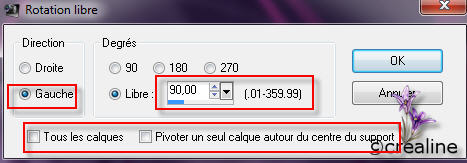 48. Mettre le calque sur mode Recouvrement 49. Fusionner les calques visibles 50. Image/redimensionner à 90 tous les calques décochés 51. Sélectionné la partie transparente avec votre baguette magique Tolérance et progressivité sur 0