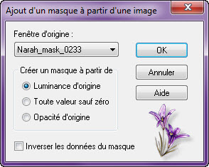 4. Calque/nouveau calque raster Remplir de votre couleur arrière plan (foncé) Calque/nouveau masque de calque/à partir d’une image