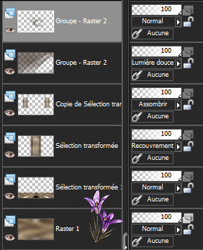 Calque dupliquer/image/miroir Fusionner avec le calque du dessous Mettre ce calque sur mode assombrir Et le calque juste en dessous (sélection transformer) Sur mode Recouvrement
