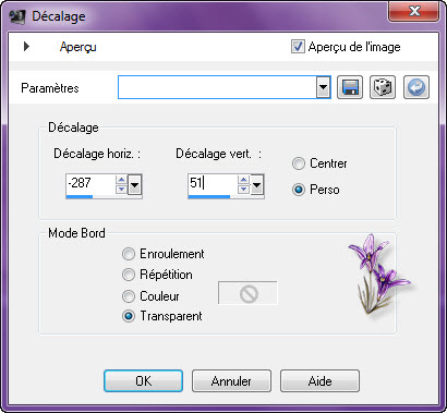 Désélectionner Appliquer une ombre portée comme ci-dessus 3. Calque /dupliquer/image /redimensionner à 50% Tous les calques décochés Effet/effet image/décalage