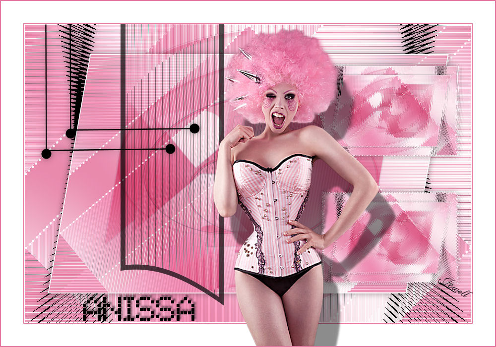 Fusionner les calques visibles 24. Mettre la couleur #ffffff blanc en arrière plan Image /ajouter une bordure de 1 couleur avant plan Image /ajouter une bordure de 45 couleur arrière plan (blanc) 25. Activer votre tube Woman_552exclusif Édition/copier/édition/collé comme nouveau calque Image /redimensionné à 80% tous les calques décochés Réglage/netteté/netteté Appliquer une ombre portée de 56/34/26/5 noir 26. Activer votre tube texte Anissa/édition /copié Édition/collé comme nouveau calque raster Placer en bas a gauche de votre tag Image /ajouter une bordure de 2 couleur avant plan 27. Signer votre travail Fusionner tout aplatir Enregistrer en JPEG Voila c’est terminée Merci d’avoir suivi ©Crealine 2 Mai 2012