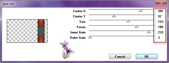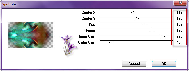 Effet/effet bord/accentuer Baiser l’opacité sur 75 4. Effet/modules externes/Graphic Plus/Spot Lite