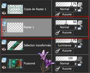 Mettre ce calque sur mode Luminance Baisser l’opacité sur 75 9. Calque/nouveau calque raster Outil sélection rectangle/sélection personnalisée