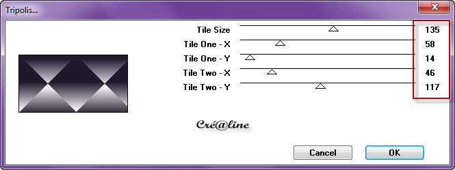Verser dans votre calque 2. Effet/modules externes/Freewaere Filters/Tripolis