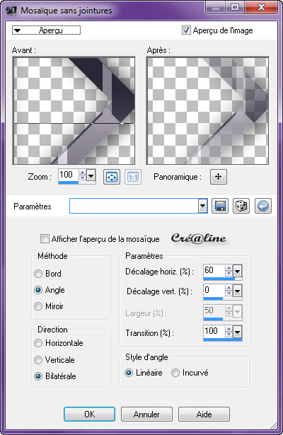 Remplir de votre couleur arrière plan 2 Désélectionner tout Effet /effet image/mosaïque sans jointure
