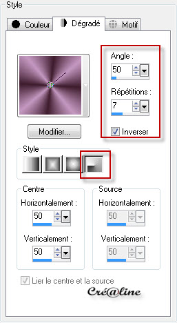 Couleur avant plan : #3e1c2d Couleur arrière plan : #c498c1 Préparé un dégradé Radial en avant plan