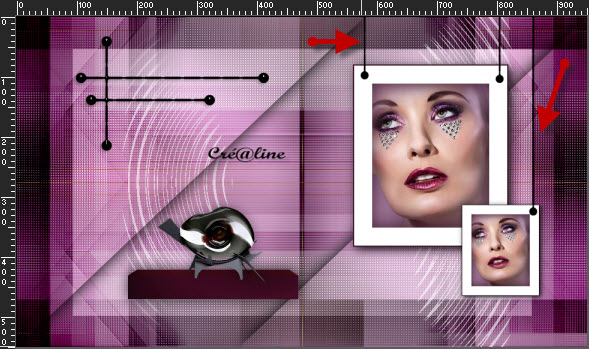 Calque/dupliquer Mettre ce calque sur mode Lumière Dure Appliquer une ombre portée de 0/0/40/30 noir 11. Vous positionnez en haut de pile Activer votre tube danae48d-divers3_cre@line Édition/copier /édition/coller comme nouveau calque Image /redimensionné à 30% - tous les calque décochés Placez sur votre petite tablette à gauche (voir modèle) Réglage/netteté/netteté Appliquer la même ombre portée que ci-dessus Fusionner les calques visibles 12. Activer votre déco_barre_1_cre@line Édition /copié /édition /collé comme nouveau calque Placer en haut à gauche (voir modèle ) Appliquer une ombre portée de 3/-3/20/5 noir 13. Activer votre déco_barre_2_Cre@line Édition/copié/édition/collé comme nouveau calque Placer sur les cadres (voir modèle)
