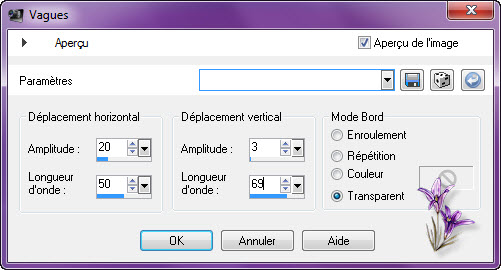 Effet /effet Distorsion /vent /vers la gauche coché /intensité 100