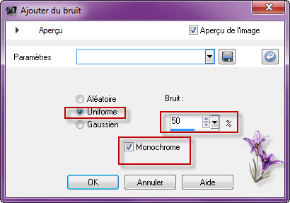 Réglage /ajouter ou supprimer du bruit/ajouter du bruit