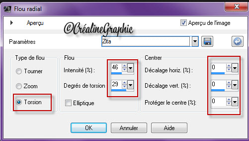 Calque/nouveau calque raster Sélectionner tout/coller dans la sélection votre fond toujours en mémoire Désélectionner tout 20. Réglage/flou /flou radial