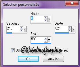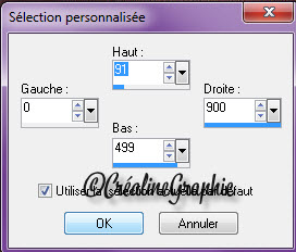8. Calque/nouveau calque raster Mettre la couleur #ffffff (blanc) en avant plan Outil sélection rectangle/sélection personnalisée