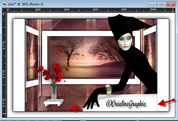 Placer comme sur le modèle 33. Activer votre tube Vase_Sussu_Luz Édition/copié/édition/collé comme nouveau calque Image /redimensionner à 40 % tous les calques décochés Réglage/netteté/netteté Placé le sur votre petite table Fusionner avec le calque du dessous Appliquer une ombre portée de 0/0/50/40 noir 34. Image/ajouter une bordure de 2 couleur #000000 noir Symétrie coché Image/ajouter une bordure de 40 couleur #ffffff blanc Sélectionner la bordure avec votre baguette magique Sélection/inverser Ombre portée comme à l’étape 30 Désélectionner tout 35. Activer votre tube_woman_549_exclusifs Edition /copié/édition/collé comme nouveau calque raster Image /redimensionner à 80 % tous les calques décochés Réglage/netteté/netteté Placer comme modèle