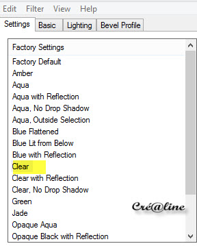 Effet/modules externes/Eyes Candy Impact 5/Glass Setting /Clear (par défaut)