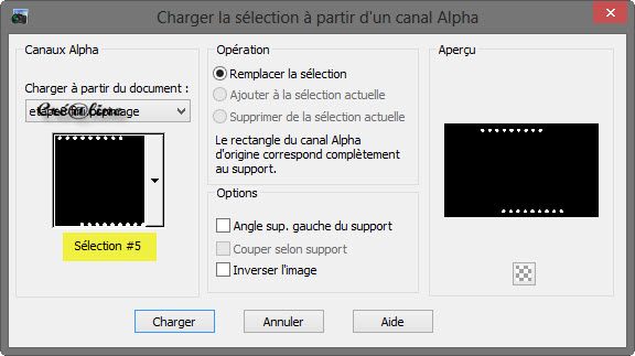 2 Sélection/charger à partir du canal alpha la sélection 1