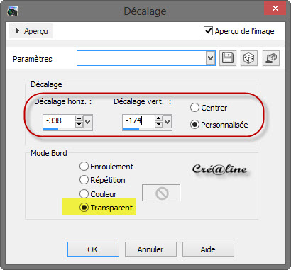 Appliquer une ombre portée de 0/0/30/40 noir 13 Vous positionnez en haut de pile Activer votre déco_1_228_crealine Edition /copier /Coller comme nouveau calque Effet /effet image/décalage