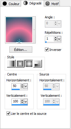 Petite Note avant de commencer Prenez un tube coloré de deux couleurs assez vive Couleur avant plan : #f9789e Couleur arrière plan : #02526b Préparé un dégradé Halo