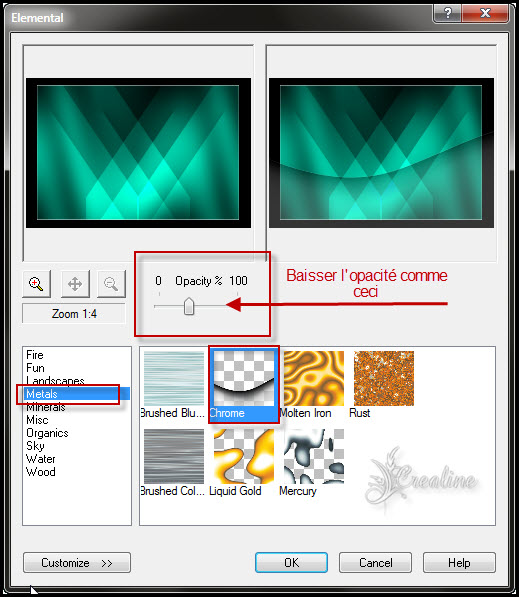 Calque /dupliquer Image redimensionner à 90 % tous les calques décochés Effet/modules externes/Xe Xtrass/Elemental/Metal - Chrome