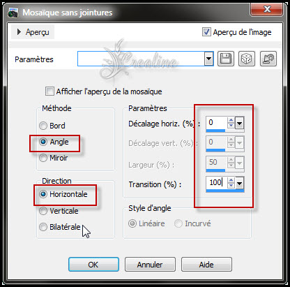 Sélection/transformer la sélection en calque Désélectionner tout Effet /mosaïque sans jointures