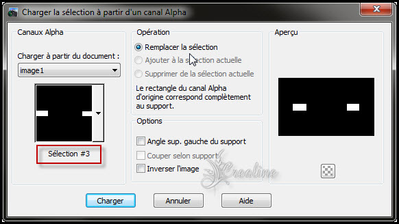 2 Sélection/charger à partir du canal alpha la sélection 1