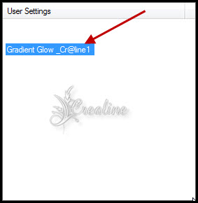 Désélectionner tout Appliquer une ombre portée de 0/0/50/20 noir Passez ce calque ne mode Recouvrement ou Lumière dure Selon vos couleurs 14 Placez-vous sur le calque juste en dessous La sélection transformée 2 ( le carré) Appliquer à nouveau le module externe/Eyes Candy Impact 5 /Gardient Glow Appliquer le preset comme ci-dessus Image/redimensionné à 90% tous les calques décochés Passez ce calque en mode Luminance Héritée Fusionner les calques visibles 15 Etape déco Pour ceux qui ne sont pas à l’aise la déco se trouve dans le matériel Copier & coller comme nouveau calque la déco_1_cre@line Ne pas bouger il est à la bonne place Coloriser ou passer en mode Lumière Héritée selon vos couleurs ***** Couleur #ffffff blanc en avant plan /fermer l’arrière plan
