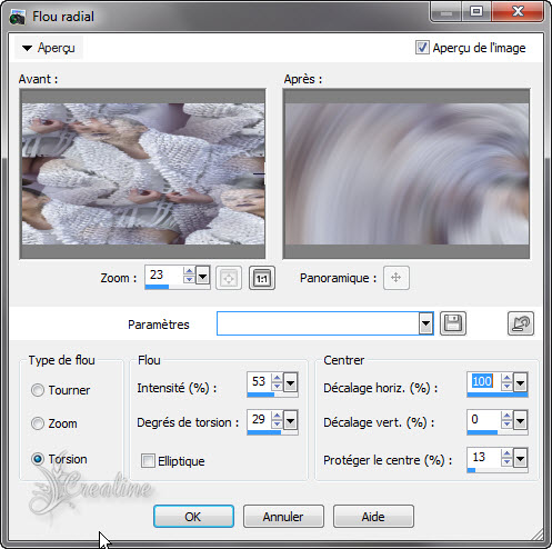 Réglage/flou/flou radial