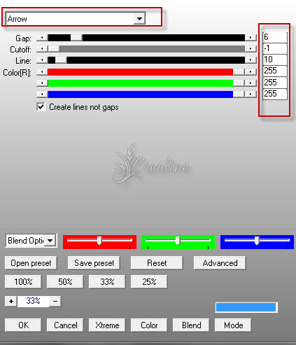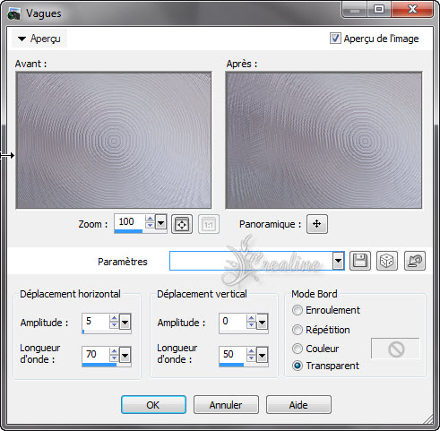 Sélection/transformer la sélection en calque Désélectionner tout Effet /modules externes/Ap Lines/Lines Silverlinig