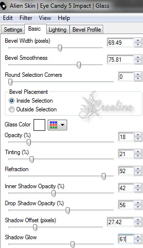 Transformer la sélection en calque normal Effet/modules externes/Eyes Candy Impact 5 /Glass