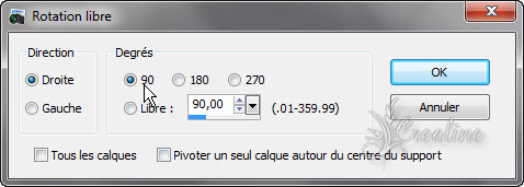 Passez ce calque en mode Recouvrement Baisser l’opacité à 65 7. Repositionnez-vous sur votre fond Calque/dupliquer Image /rotation libre