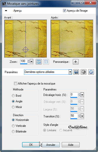 Effet/effet bord/accentuer d’avantage 14. Positionnez-vous sur le haut de pile Calque /dupliquer Effet /effet image/mosaïque sans jointures