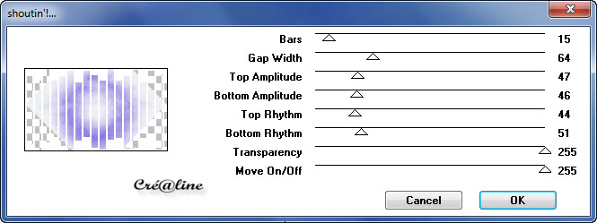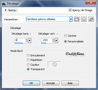 14. Toujours Positionnez en haut de pile Activer votre tube texte Édition/copier /édition/collé comme nouveau calque Effet /effet image/décalage