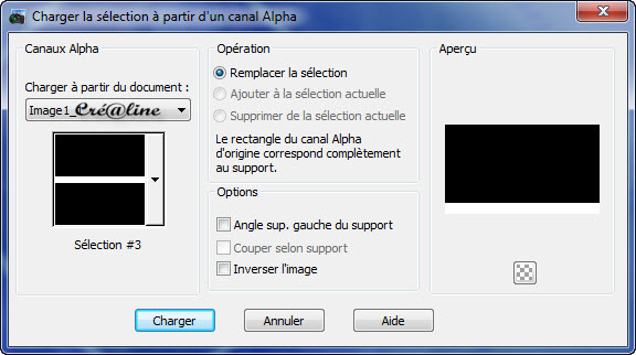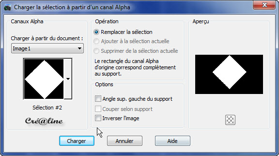 2. Sélection/charger à partir du canal alpha la sélection 1