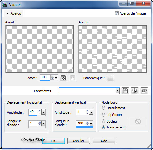 Vous positionnez sur le calque du haut (copie de raster 1) Fusionner avec le calque du dessous Effet/ effet distorsion /vagues