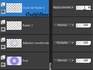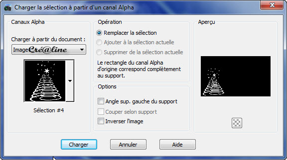Fusionner avec le calque du dessous Nommez le étoile 17. Calque/nouveau calque raster Sélection/charger à partir du canal alpha la sélection 4
