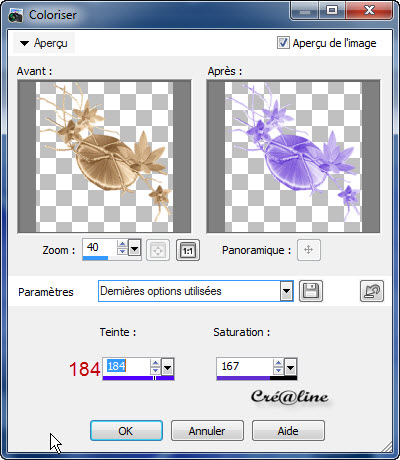 Réglage /teinte et saturation/coloriser Selon vos couleurs Avec mes couleurs comme ci-dessous Teinte 177 / Saturation 167 Image/redimensionné à 85% tous les calques décoché Réglage /netteté/netteté Placez comme ci-dessous