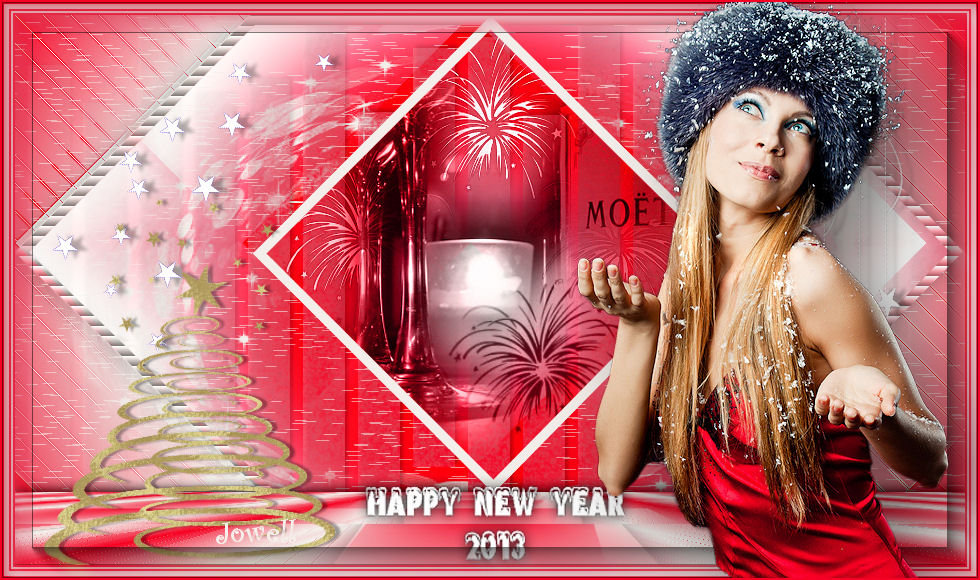 9. Activer votre élément déco_1_happy new year Édition/copier /édition/coller comme nouveau calque Ne pas bouger il est a la bonne place Nommez le cadre _2 Avec votre baguette magique Tolérance et progressivité sur 0 Sélectionner l’intérieur du cadre Vous positionner sur votre fond Transformer la sélection en calque Nommez le fond_2 Passez ce calque en mode Lumière dure ou autres selon vos couleurs Désélectionner 10. Toujours positionnez sur votre fond 2 Nouveau calque raster /remplir de la couleur 2 arrière plans Calque /calque de masque/à partir d’une image
