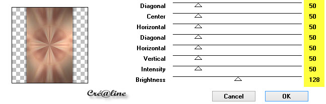Passez ce calque en mode Eclaircir davantage Réglage /netteté/netteté 4 Positionnez vous sur votre fond (Raster 1) Calque/dupliquer Réglage/flou /flou radial