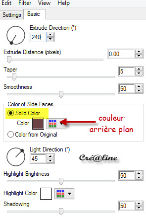 Versez-y la couleur avant plan #ffffff Désélectionner tout Effet/modules externes/Eyes Candy Impact /Extrude Cliquer sur basic et paramétré comme ci-dessous