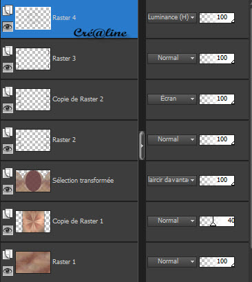 Calque/dupliquer Image/miroir Fusionner avec la calque du dessous Calque /dupliquer Passez ce calque en mode Ecran 6 Calque /nouveau calque Sélection/charger à partir du canal alpha la sélection 3