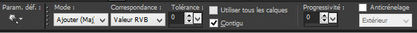 N’oubliez pas de remettre l’opacité à 100 de votre pot de peinture Image/ajouter une bordure de 1 pixel de couleurs arrière plan (foncé) 40 pixels de couleur avant plan #ffffff 1 pixel de couleurs arrière plan (foncé) Sélectionner la bordure blanche avec votre baguette magique