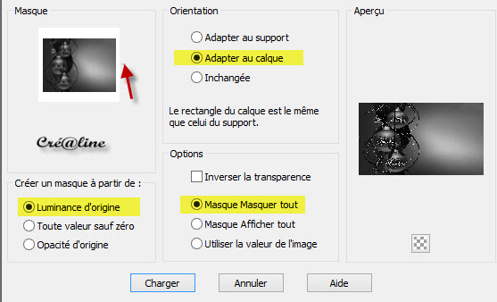 1. Ouvrir votre calque Alpha sélection dans votre psp /Maj D pour le dupliquer Ou Fenêtre /dupliquer Nous travaillons sur la copie Versez la couleur avant plan dans votre calque Calque/nouveau calque Versez la couleur arrière plan Calque /charger/enregistrer un masque / à partir du disque