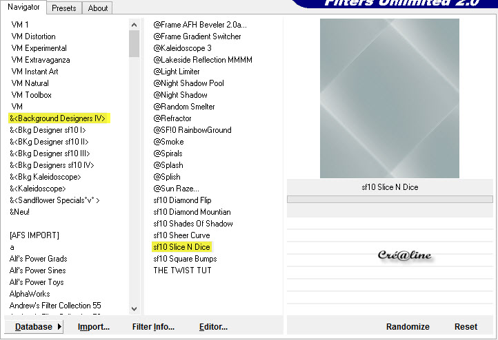 Transformer la sélection en calque Effet/modules externes/Unlimited/&<Background Designers IV>/sf10 Slice N Dice