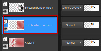 Passez ce calque en mode Lumière douce Sélection /inverser Positionnez vous sur le calque juste en dessous (sélection transformée) (ne pas tenir compte des couleurs des calques)