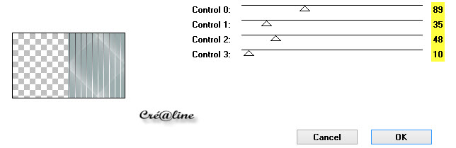 Verser votre dégradé dans la sélection Réglage/flou/flou gaussien à 10 Effet/modules externes/Eyes Candy Impact 5/Glass Setting /Clear Basic