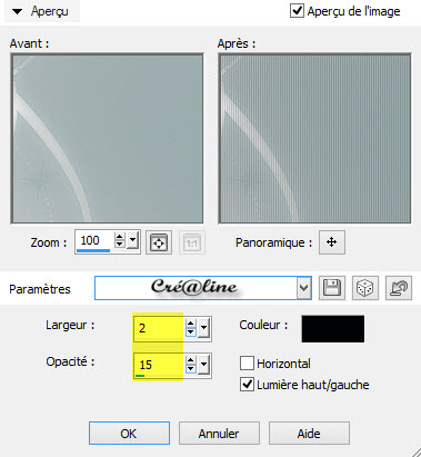 2 pixels d’une couleur foncé prélever dans votre tag #64787b 50 pixels couleur av plan #ffffff Sélectionner cette bordure avec la baguette magique Sélection/inverser Appliquer une ombre portée de 0/0/70/30 noir Désélectionner tout Image /ajouter des bordures de 2 pixels de la couleur #64787b 25 pixels couleur av plan #ffffff 1 pixel de couleur #64787b 14 Calque/Nouveau calque Apposez votre signature Fusionner tout aplatir Redimensionner à 950 pixels Réglage/netteté/netteté ******************* Voila c’est terminée J’espère que vous avez passé un agréable moment en réalisant ce tutoriel ©Crealine 24 Novembre 2013 Un autre Modèle