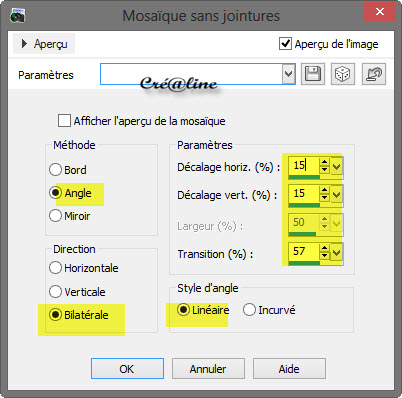 1. Ouvrir votre calque Alpha sélection dans votre psp /Maj D pour le dupliquer Ou Fenêtre /dupliquer Nous travaillons sur la copie Versez y votre dégradé Lineair Calque/nouveau calque Sélectionner tout Copier votre tube Alies 1VR560-woman Édition/coller dans la sélection Désélectionner tout Effet/effet image/mosaïque sans jointures
